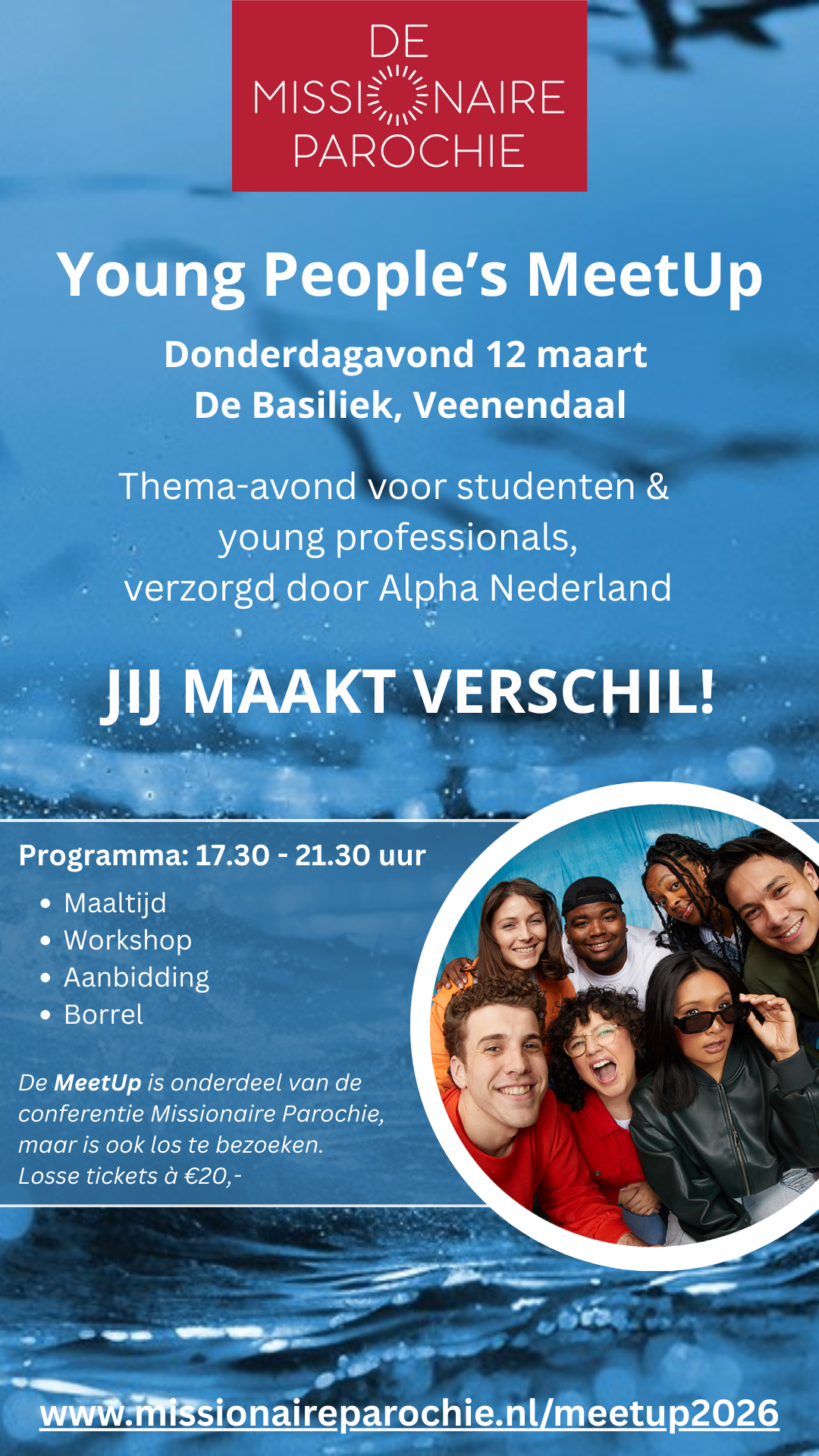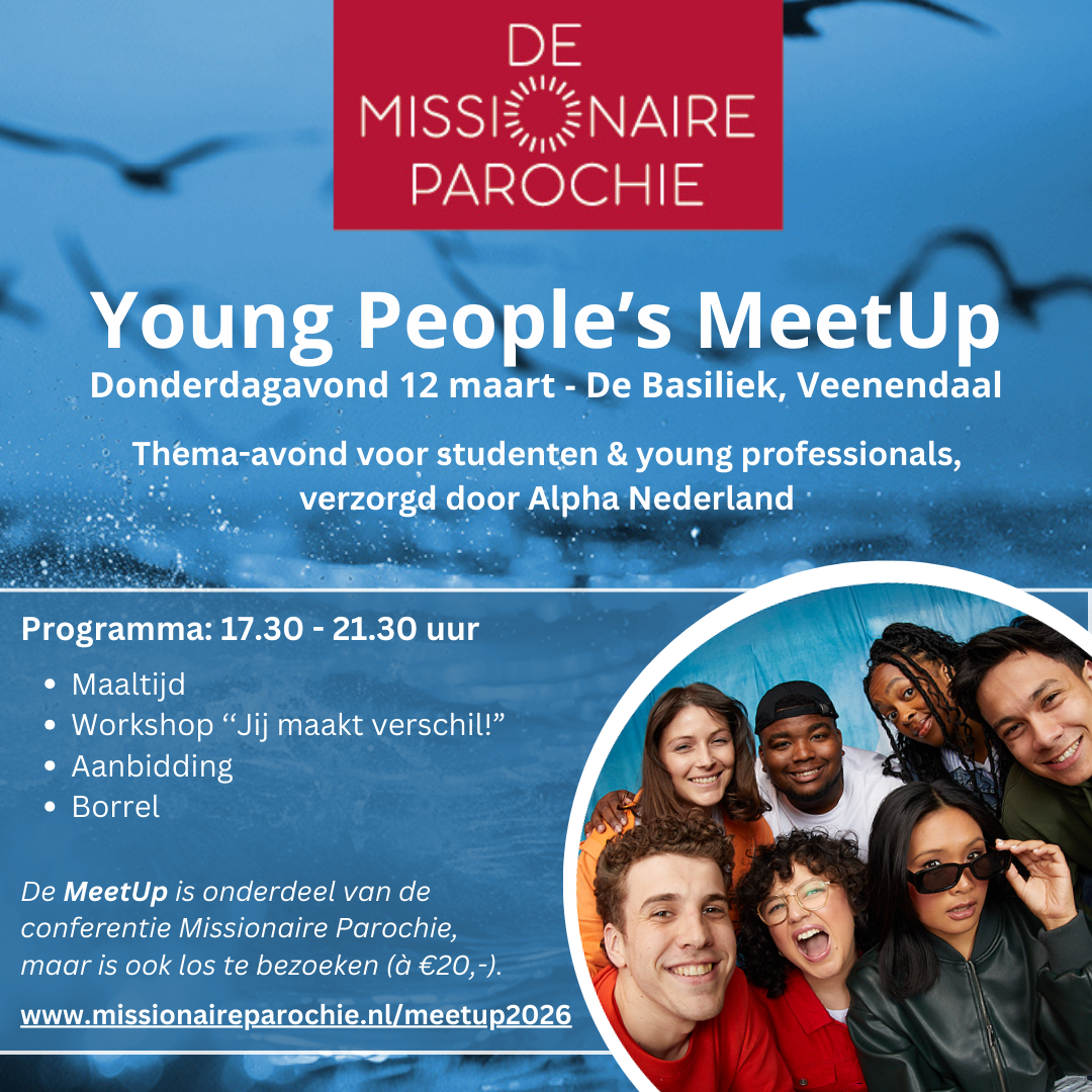 Al een paar jaar is de Young People's MeetUp, een aparte ontmoeting voor studenten en young professionals, vaste prik op de vooravond van de conferentie Missionaire Parochie. Dit biedt een mooie gelegenheid om andere jongeren te ontmoeten, uit te wisselen en van elkaar te leren. Dit jaar zal de MeetUp plaatsvinden als officieel parallel programma van de conferentie Missionaire Parochie, op donderdagavond 12 maart 2026.